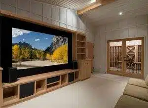 It’s natural to gravitate to home theater products and equipment first, but this should be a selection based on how you would use your home theater. As we stated above, seating will be a key driver. Will your theater often be used on Sundays for watching the game? Then you might want a custom home theater installation with multiple large flat-panel TVs for game days to keep up with all the NFL action. For movies, you could have a hidden screen drop down from the ceiling and a projector that does the same.
