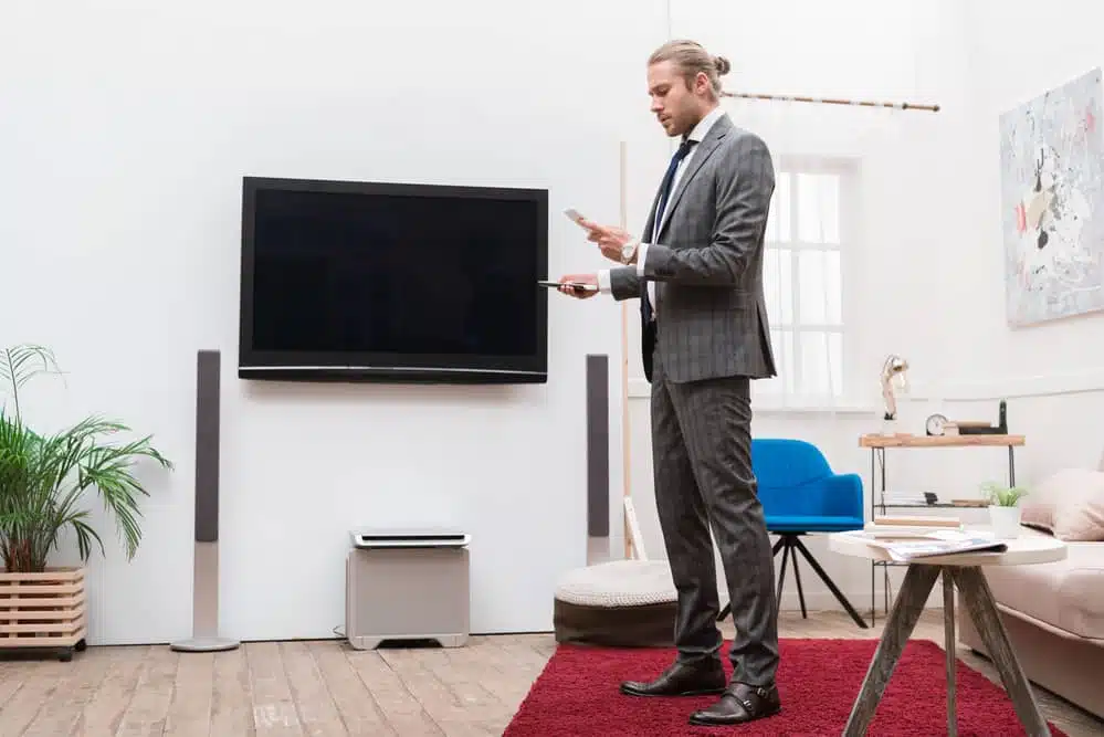 This scenario often happens: you purchase a new flat-screen TV, take it home, and find the sound isn’t loud enough. The picture seems great, but you must crank the volume to hear the movie. The fact is, as TVs get thinner, speakers perform worse. An average flat-screen TV has two speakers slightly bigger than a quarter. With speakers that small, you can’t anticipate proper sound, plus you won’t feel as involved in the action as you’d like.